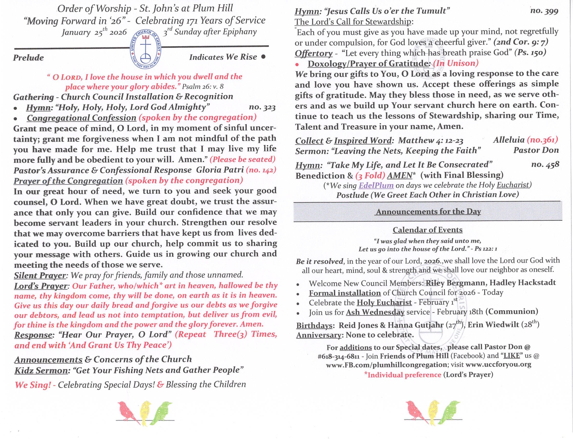 WORSHIP BULLETIN - 3rd Sunday after the Epiphany 1-25-26