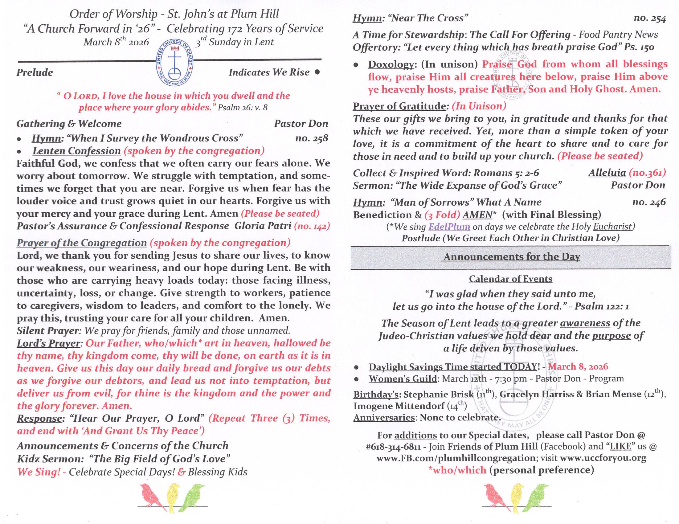 WORSHIP BULLETIN - 3rd Sunday in Lent 3-8-26
